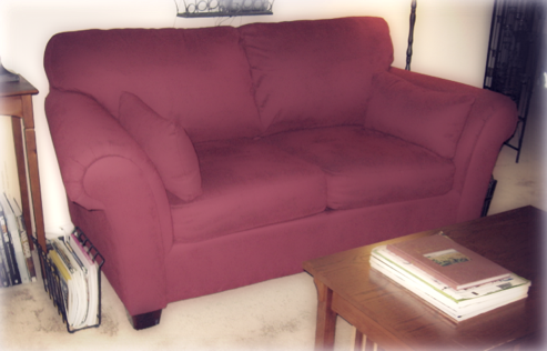 The ominous amount on the check should have given it away. It took about a week to realize that the butt on my beige shorts was turning pink and my white T-shirts had a nice pink glow about them on the back as well. Apparently the couch needed to be treated with some sort of chemical to prevent the red dye from bleeding over onto my clothing. So instead of dealing with the problem, I covered it up with a blanket (which would eventually turn pink on one side) and looked the other way.